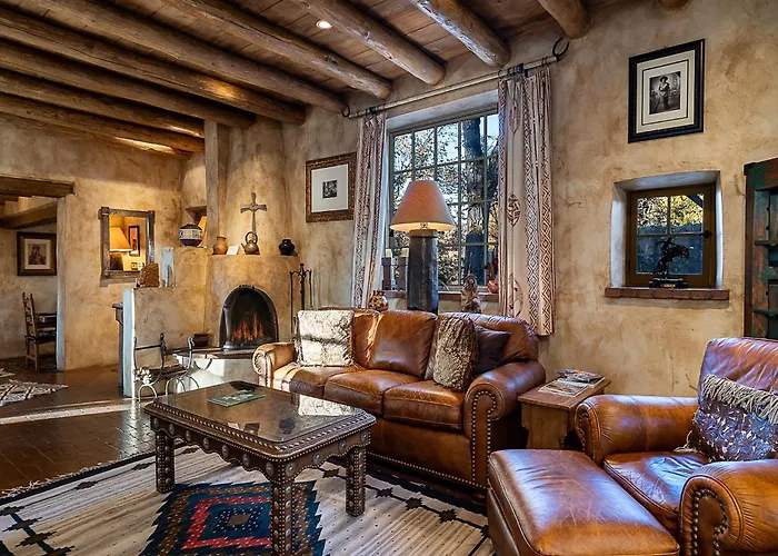 Santa Fe Municipal airport can be reached within 23 minutes drive, and natural attractions like Santa Fe Botanical Garden are 1.3 miles away. The nearby entertainment venues include Lensic Performing Arts Center, situated approximately 25 minutes' walk away. Educational highlights situated 1.8 miles from this Santa Fe villa include Santa Fe Institute.